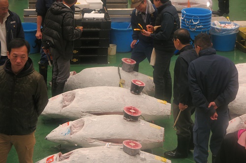 The market opens from 5;00 am and the tuna auction commences at 5;30 am. There is an elevated viewing platform for visitoes but it is wise to pre-book (on-line) and get one of the limited spots at the lower level viewing platform which operated from 5:55 am until 6:25 am.. Bookings open 10 days in advance and there is a lottery system if over-booked so plan well ahead as it is worthwhile. Go to the market website for booking details.